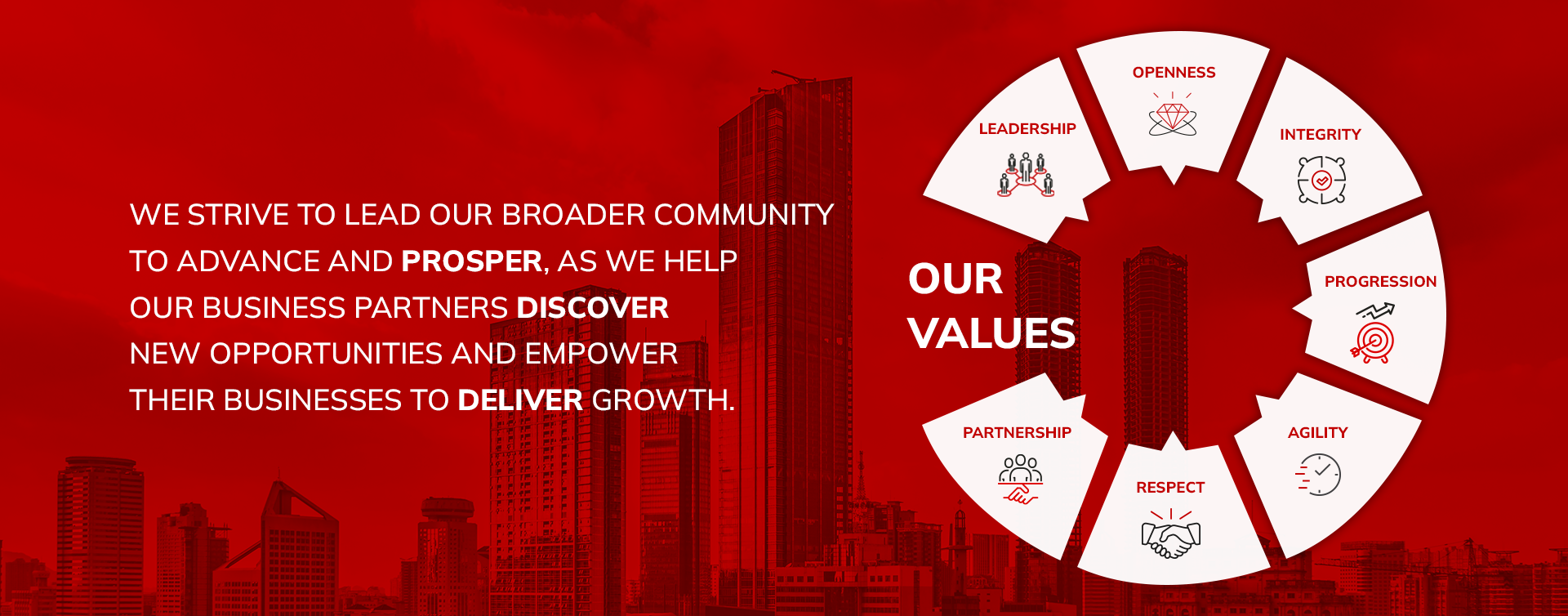 Our global approach towards our employees and stakeholders pinpoints the values that shape our